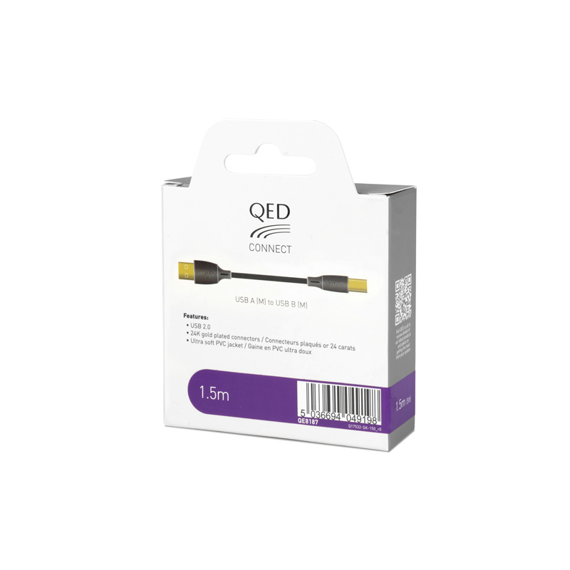 Cenovno ugoden kabel britanskega proizvajalca ‘QED‘. Uvršča se v novo vstopno serijo ‘Connect‘, ki prinaša fleksibilen in vzdržljiv PVC ovoj v črni barvi, pozlačene konektorje (24 K) ter čiste bakrene vodnike (99,99 % OFC) za trajen in zanesljiv prenos avdio signala. Kabel je skladen z zahtevami standarda USB 2.0.